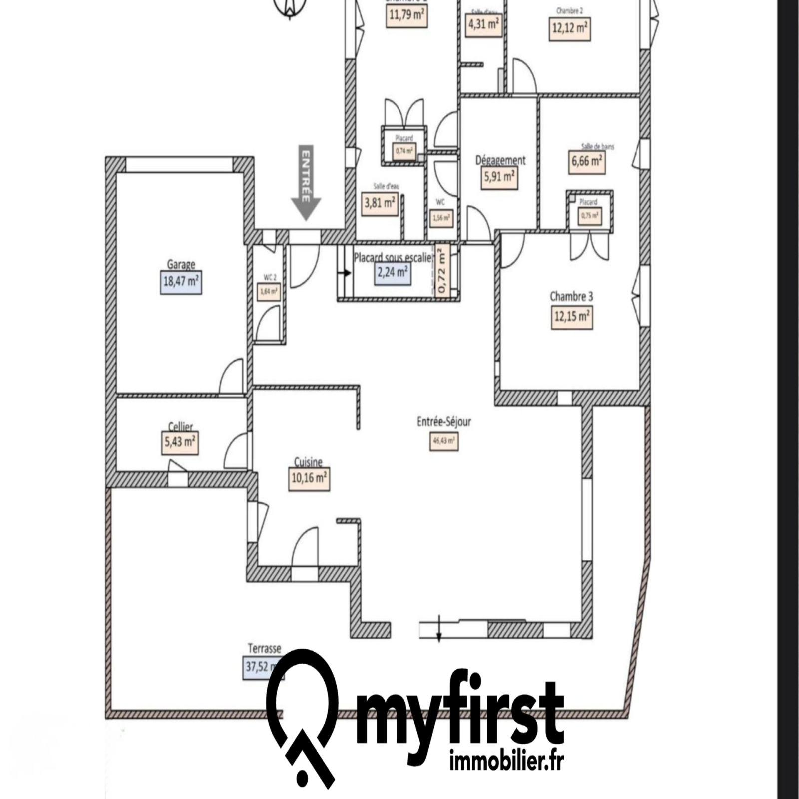 La villa dispose de la climatisation réversible et d’un garage attenant de 18,5 m².