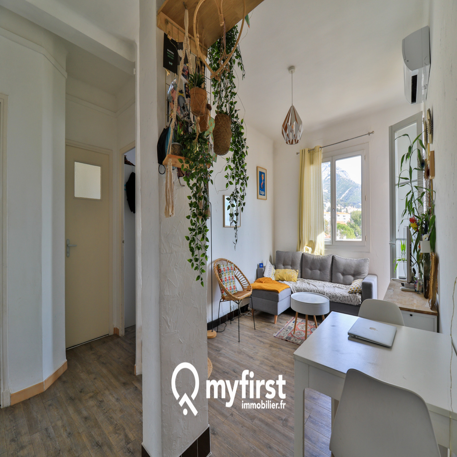 Sur les hauts de Claret, au cœur d'une résidence fermée, éloignée des nuisances sonores, un appartement jeune, dans l'air du temps, au dernier étage, rénové avec gout et ingéniosité, pour trois pièces principales. Ses 55m² comprennent une jolie pièce de vie, baignée de soleil et donnant accès à une terrasse surplombant l'environnement et profitant d'une vue sur le Faron; Ensuite nous trouverons deux chambres, ayant chacune son placard, une cuisine séparée assez grande pour y installer un coin repas, une salle d'eau et un WC. La résidence quant à elle, est fermée, entretenue, et profite d'un grand parking collectif pour vous assurer un stationnement chaque soir. Concernant l'aspect financier : Les charges mensuelles s'élèvent à 90 €, comprenant la consommation de chauffage ; Le foncier quant à lui, est de 980 €. Un Appartement ou l'on se sent bien, comme dans un petit cocon, lumineux et agréable à vivre.