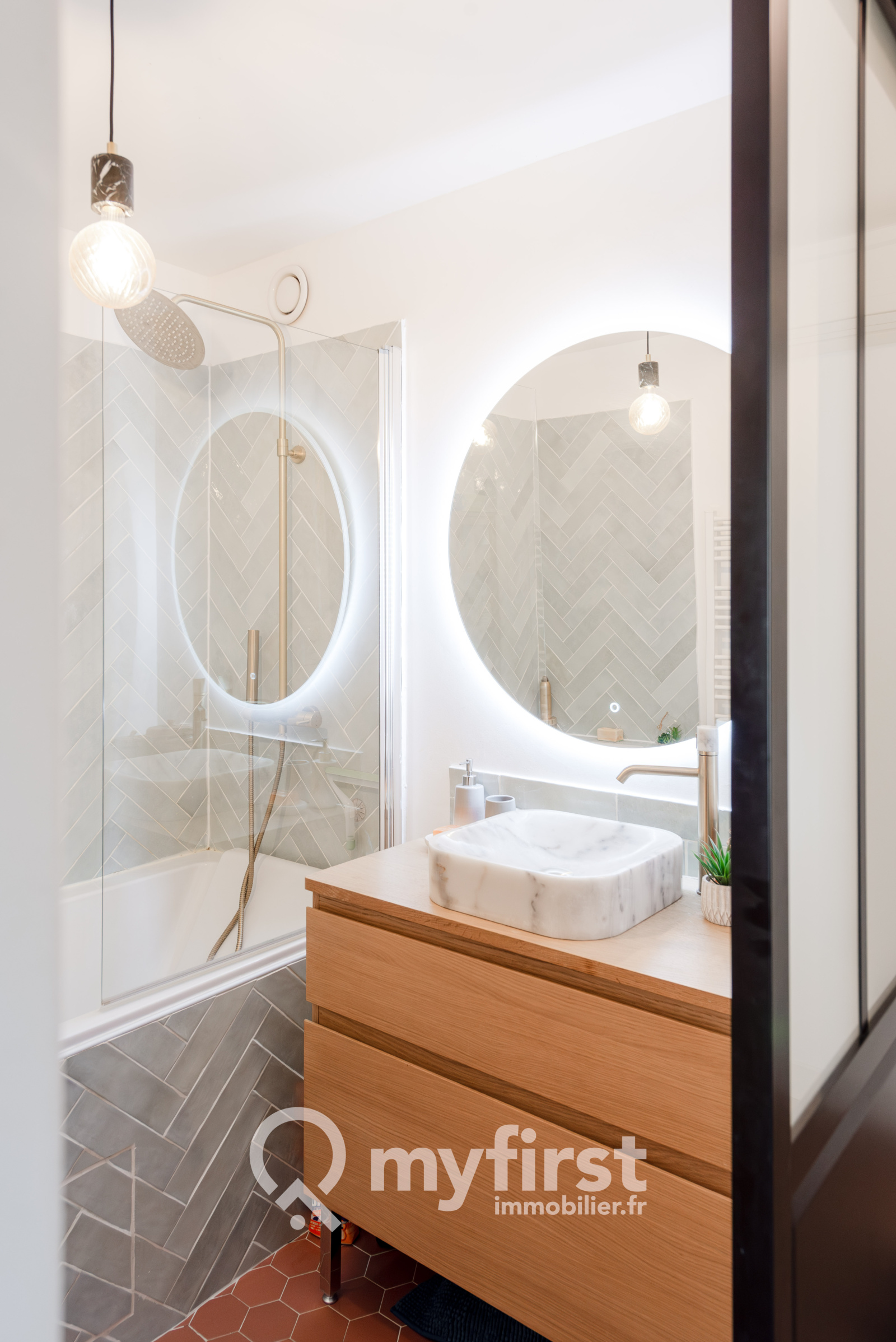 Côté nuit, deux belles chambres vous attendent, chacune ayant son dressing sur-mesure. La salle de bain, contemporaine, allie modernité et raffinement. Vous trouverez également des WC séparés, pour plus de confort au quotidien.