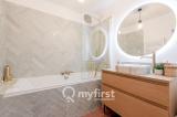 Tout l'appartement a été rénové avec soin, avec des prestations de qualité : parquet en pointe de Hongrie, double vitrage, climatisation et une décoration soignée, à la fois sobre et élégante.