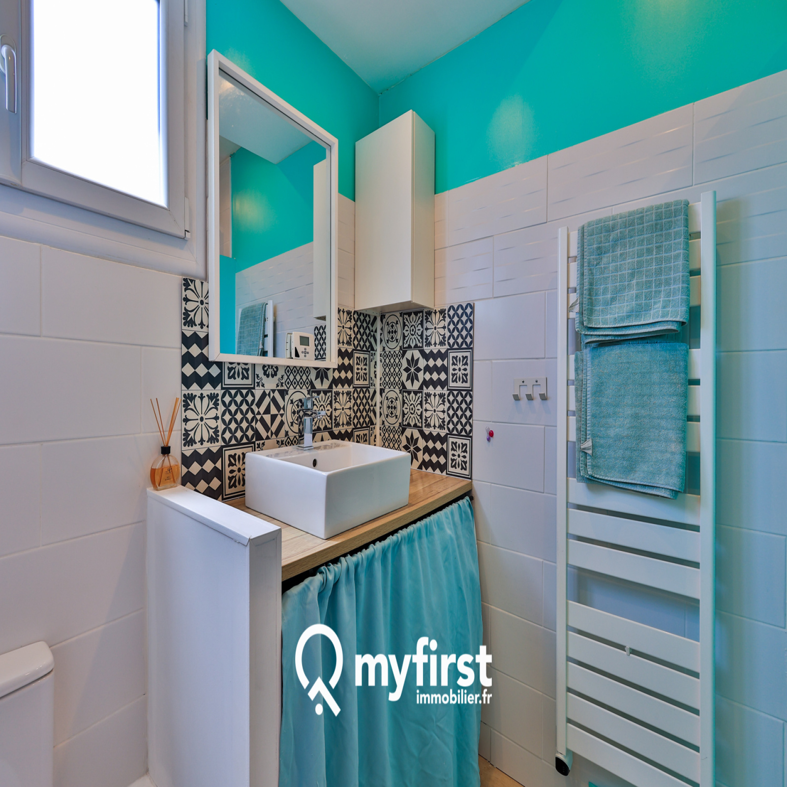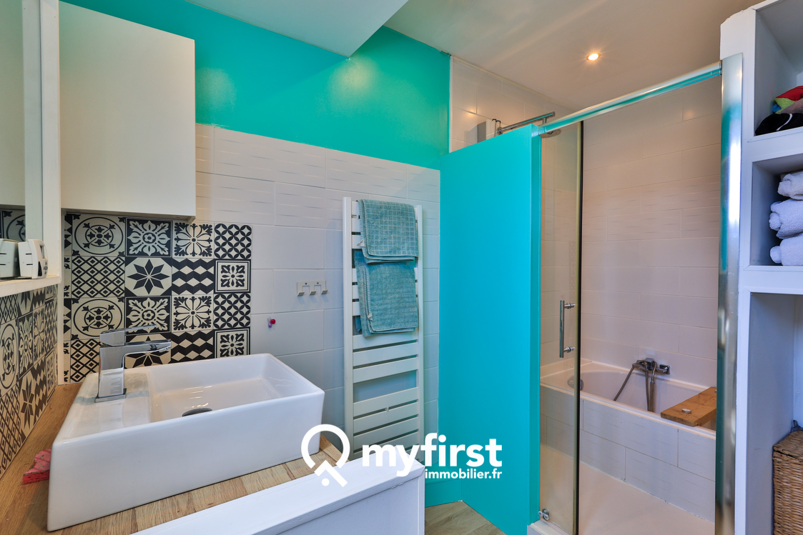 Cet appartement est surprenant, et chaque pièce réserve de belles surprises, et c’est dans la salle de bains que nous vous amenons… Avez-vous déjà rêvé d’une baignoire pour la relaxation & les enfants, et d’une douche pour le côté pratique à côté ? Et bien c’est ce que nous vous proposons ! Celle salle de bains allie le côté pratique, à l’aspect « relax » sur des tons de couleurs doux et harmonieux.