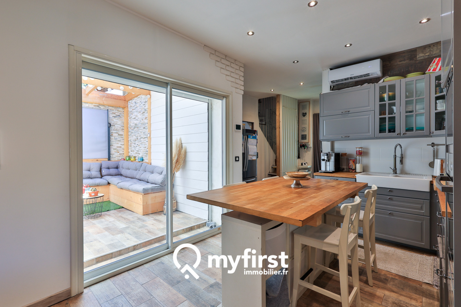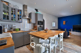 L’espace de vie, offre une superbe cuisine équipée (De nombreux rangements) dont l'îlot central permet d’imaginer d’agréables apéritifs entre amis, ou simplement de bons moments en famille ; Le salon, attenant, offre un coin de tranquillité, chaleureux grâce à son poêle à bois pour de belles flambées en hiver.