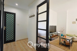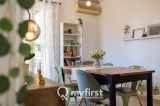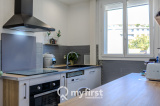 La cuisine indépendante, moderne et parfaitement équipée, dispose d'une loggia attenante, idéale pour allier praticité et rangement.