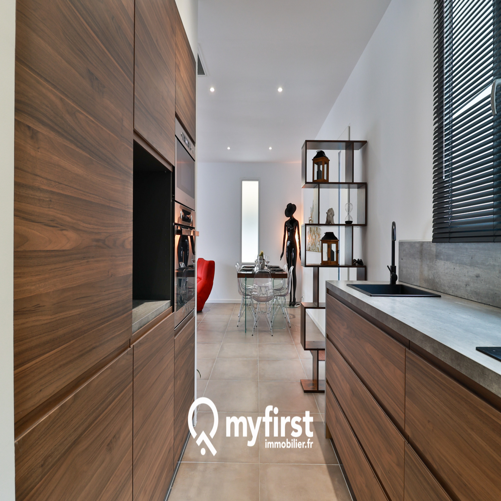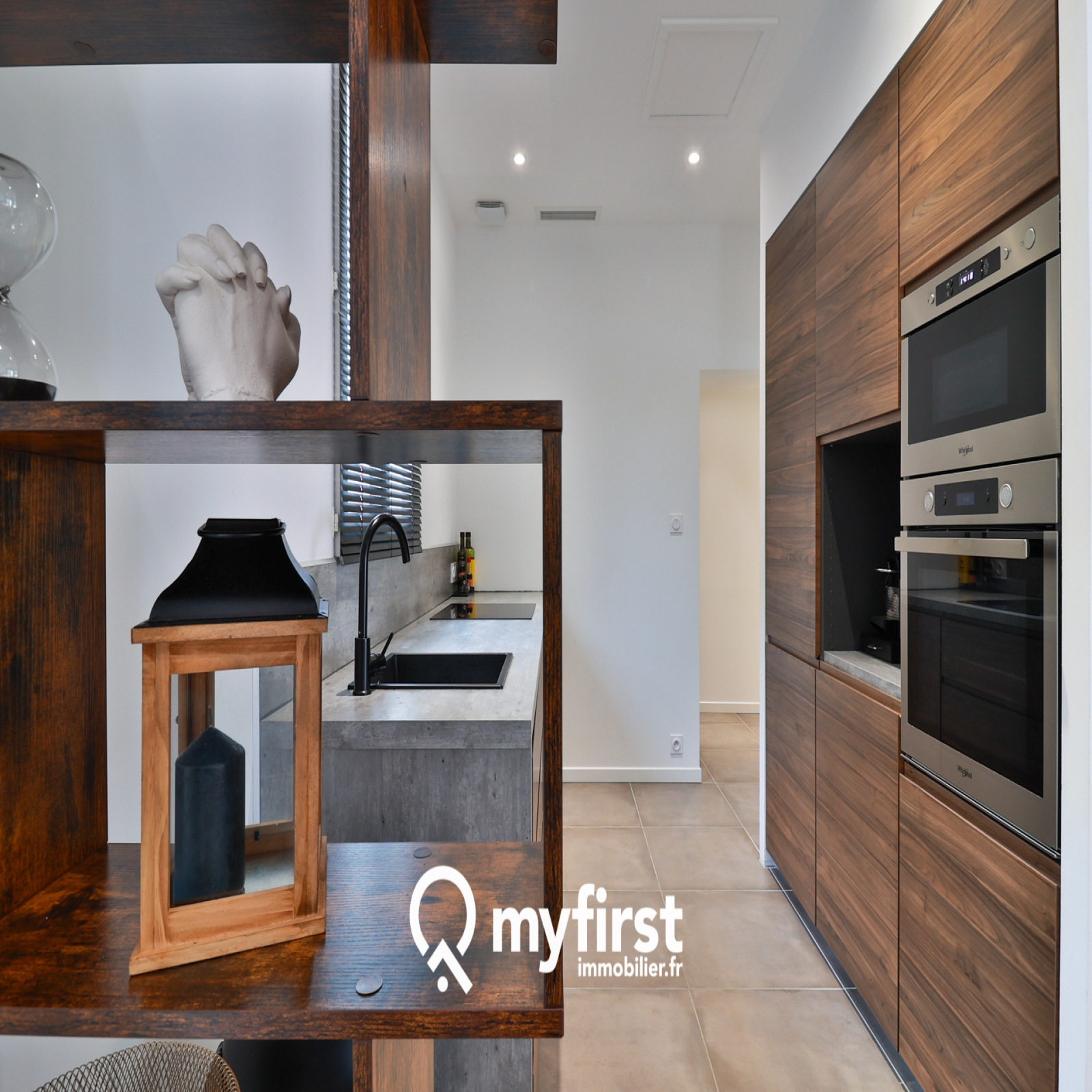 La cuisine faite sur mesure, atout majeur de la maison, est entièrement équipée, pensée pour une utilisation optimale au quotidien, et dotée de nombreux rangements, elle plaira aux personnes ayant le sens de la réception, et le gout de la cuisine.