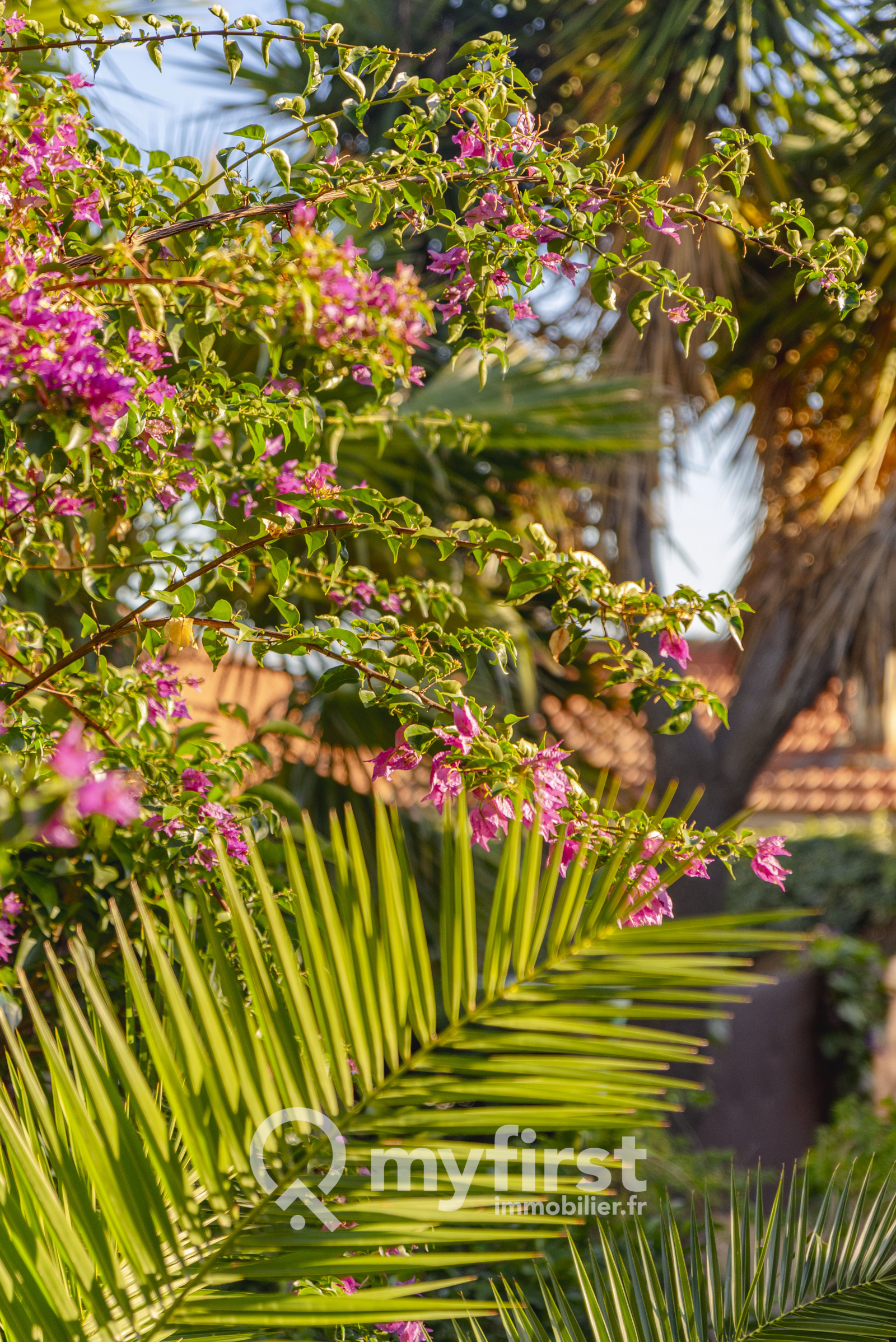 Le jardin de 650 m², soigneusement aménagé, offre une terrasse ombragée et un environnement végétalisé propice au calme. Au fond du terrain, une piscine hors sol habillée de teck s’intègre harmonieusement sans empiéter sur l’espace extérieur. Deux grandes caves permettent un rangement confortable et un espace atelier, tandis qu’un forage assure une autonomie pratique pour l’arrosage. Le stationnement d’un véhicule est possible à l’intérieur du terrain.
