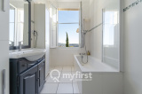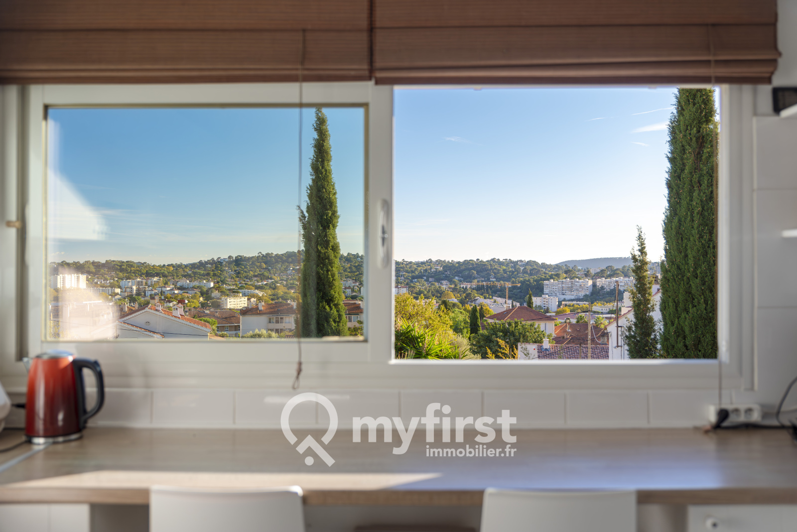 Au rez-de-chaussée, un salon lumineux et une cuisine exposés plein sud ouvrent sur une vue dégagée sur l’est toulonnais, les toits typiques du quartier et un aperçu mer. Une véranda prolonge agréablement la pièce de vie, créant un espace confortable baigné de lumière. Deux chambres, une salle d’eau et des toilettes indépendants complètent ce niveau, idéal pour vivre de plain-pied.