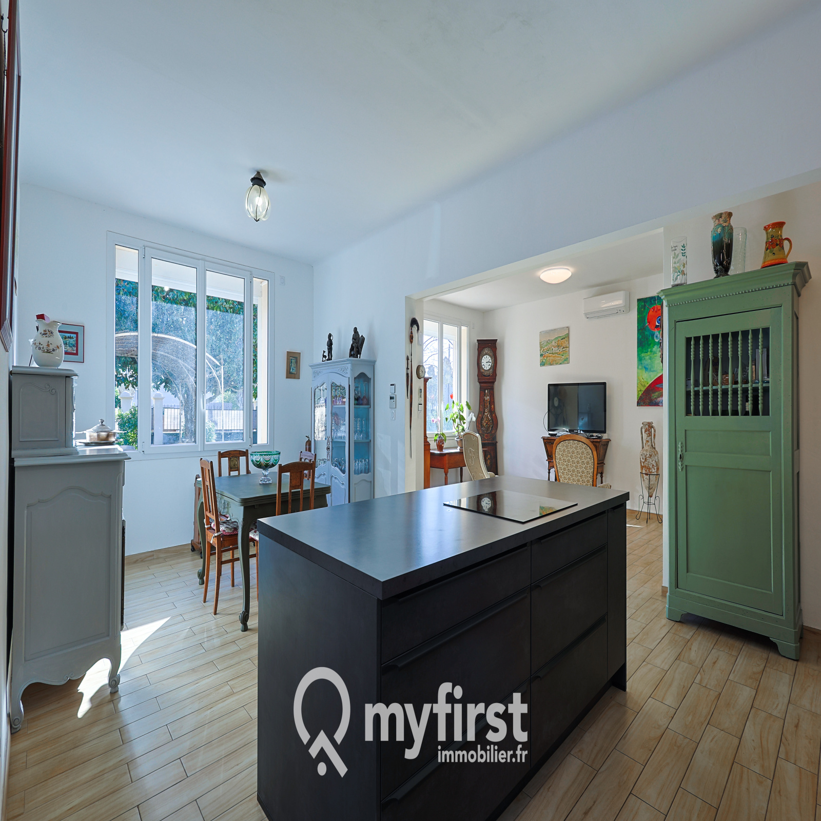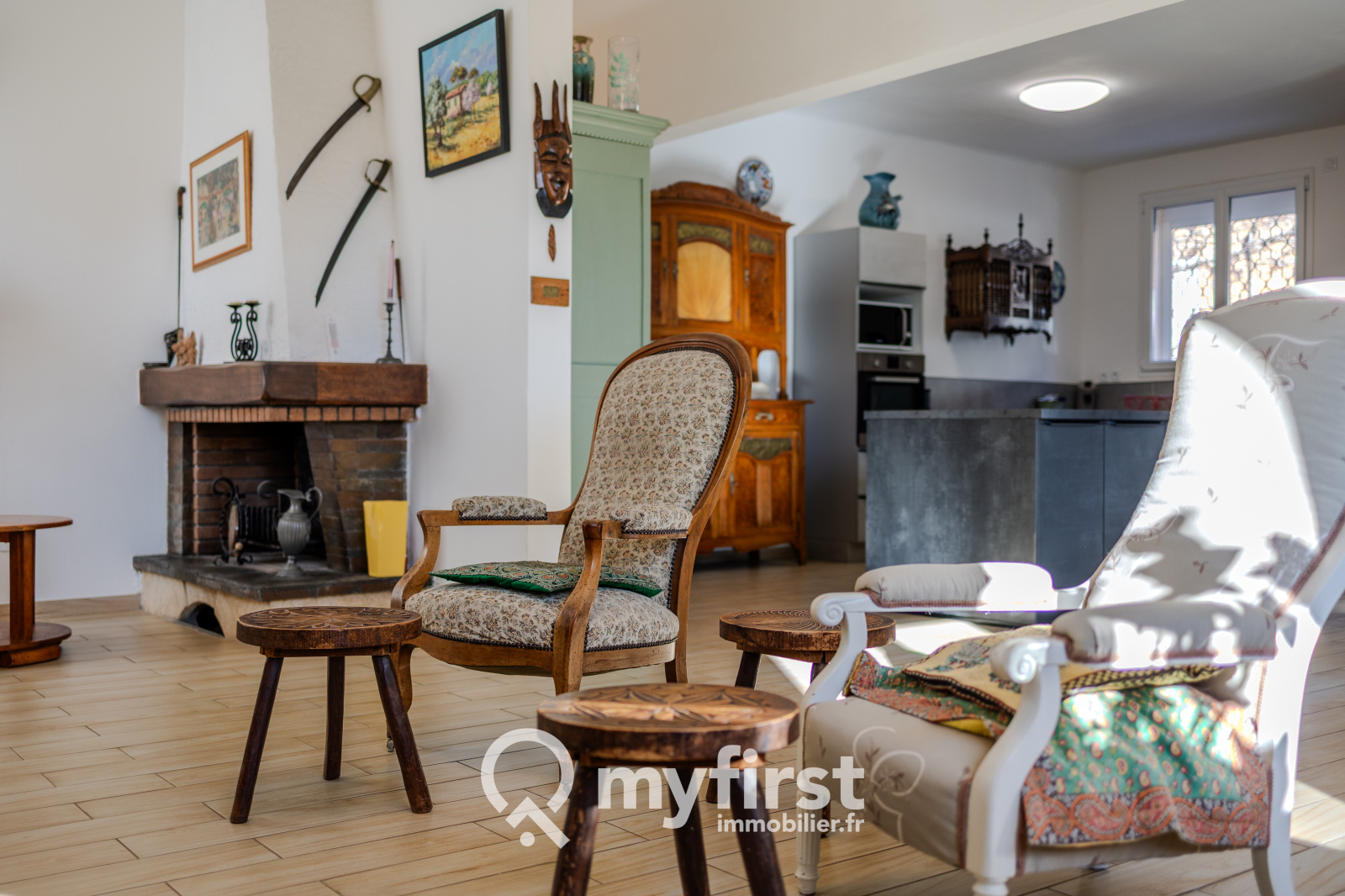 Cuisine équipée, arrière-cuisine discrète, coin salon agrémenté d’une cheminée… Tout est là pour créer un cadre de vie harmonieux.