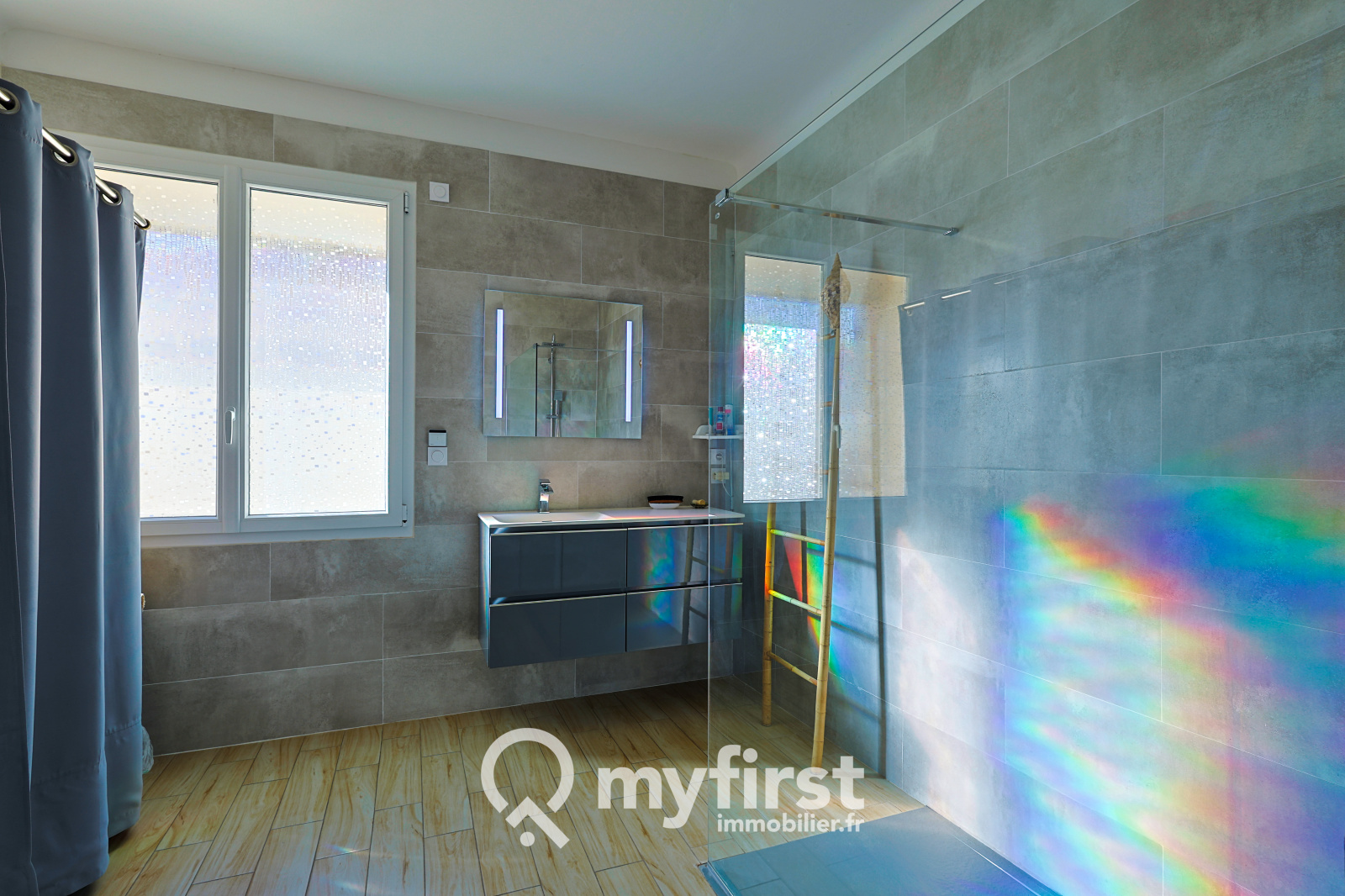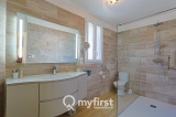 Côté nuit, le rez-de-chaussée propose une chambre, une belle salle d’eau avec douche à l’italienne, ainsi qu’une grande suite parentale de près de 30 m², avec son espace bureau, ses rangements et sa propre salle d’eau.