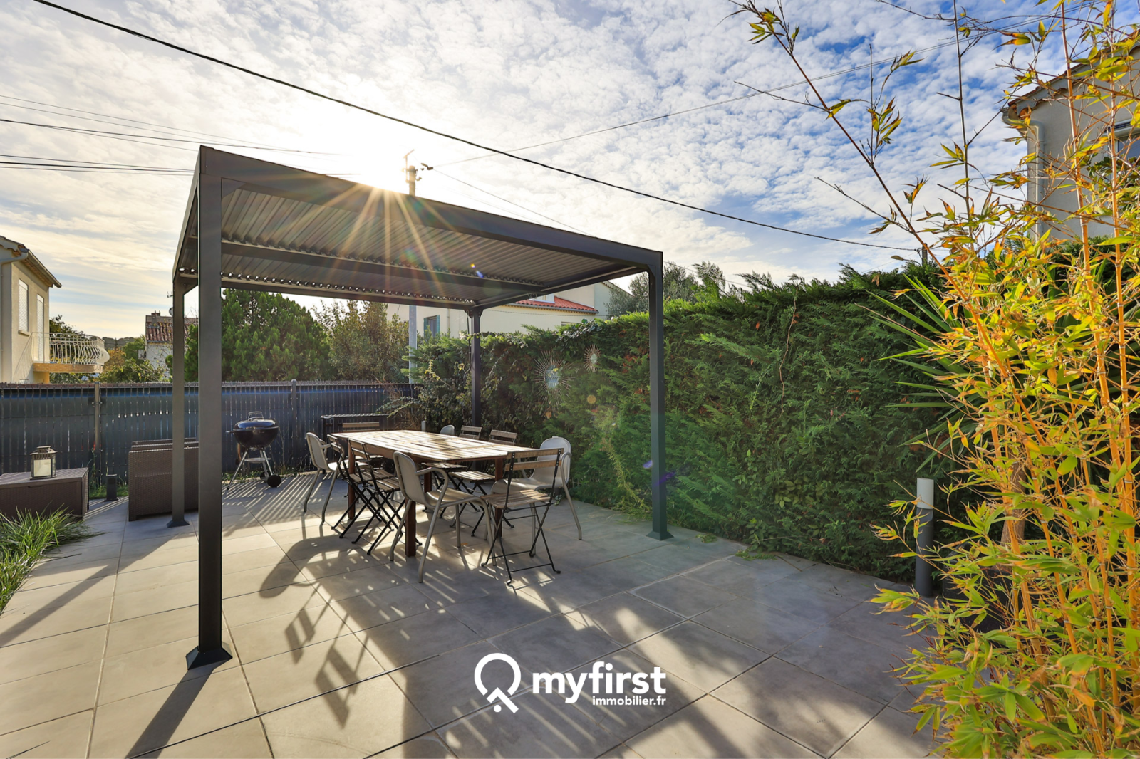 En reprenant l’escalier, vous découvrirez votre jardin privatif, suffisamment grand pour envisager de belles soirées d’été, un espace de jeux pour les enfants, et le luxe d’imaginer son potager ! Le jardin est équipé d’une pergola, qui restera évidemment sur place ! En bref un bel extérieur entièrement aménagé et prêt à l’emploi.