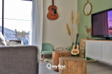 Vous serez face à un grand espace de vie et sa cuisine entièrement équipée, façonnée dans un esprit « loft », et donnant accès à une superbe terrasse. Vous pourrez profiter de trois chambres, chacune de bonne taille, ainsi que d’une salle d’eau et d’un WC indépendant.