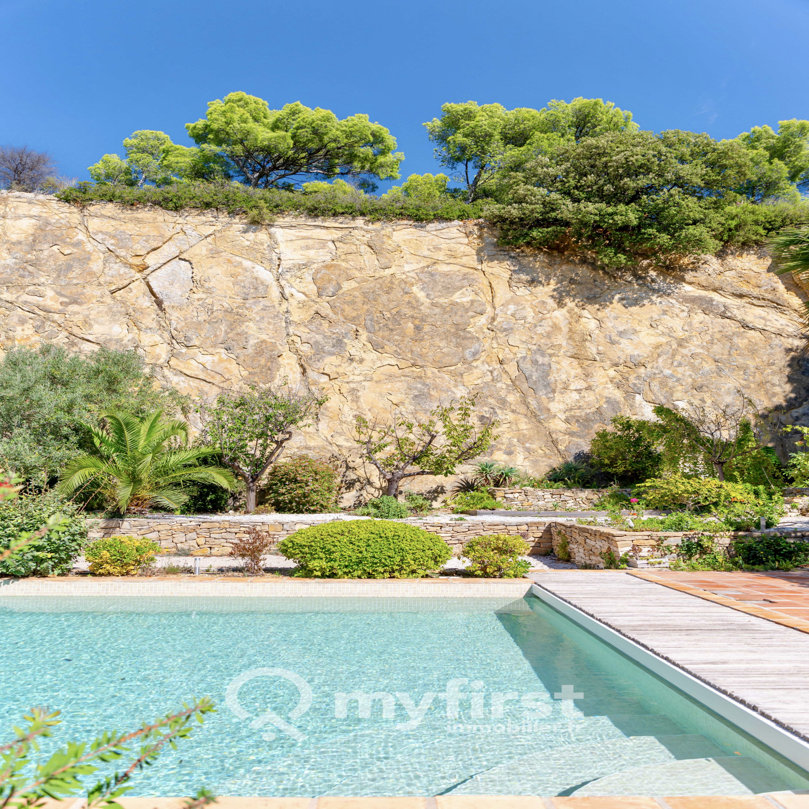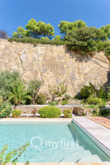 En approchant de cette villa, vous êtes immédiatement frappé par la beauté du paysage environnant. Le terrain de 1800 m², alliant la force de la falaise et la douceur des jardins Japonais, luxuriants et soigneusement paysagés, invite à la sérénité. L’odeur des pins et le chant des oiseaux vous accueillent, vous promettant une expérience unique.