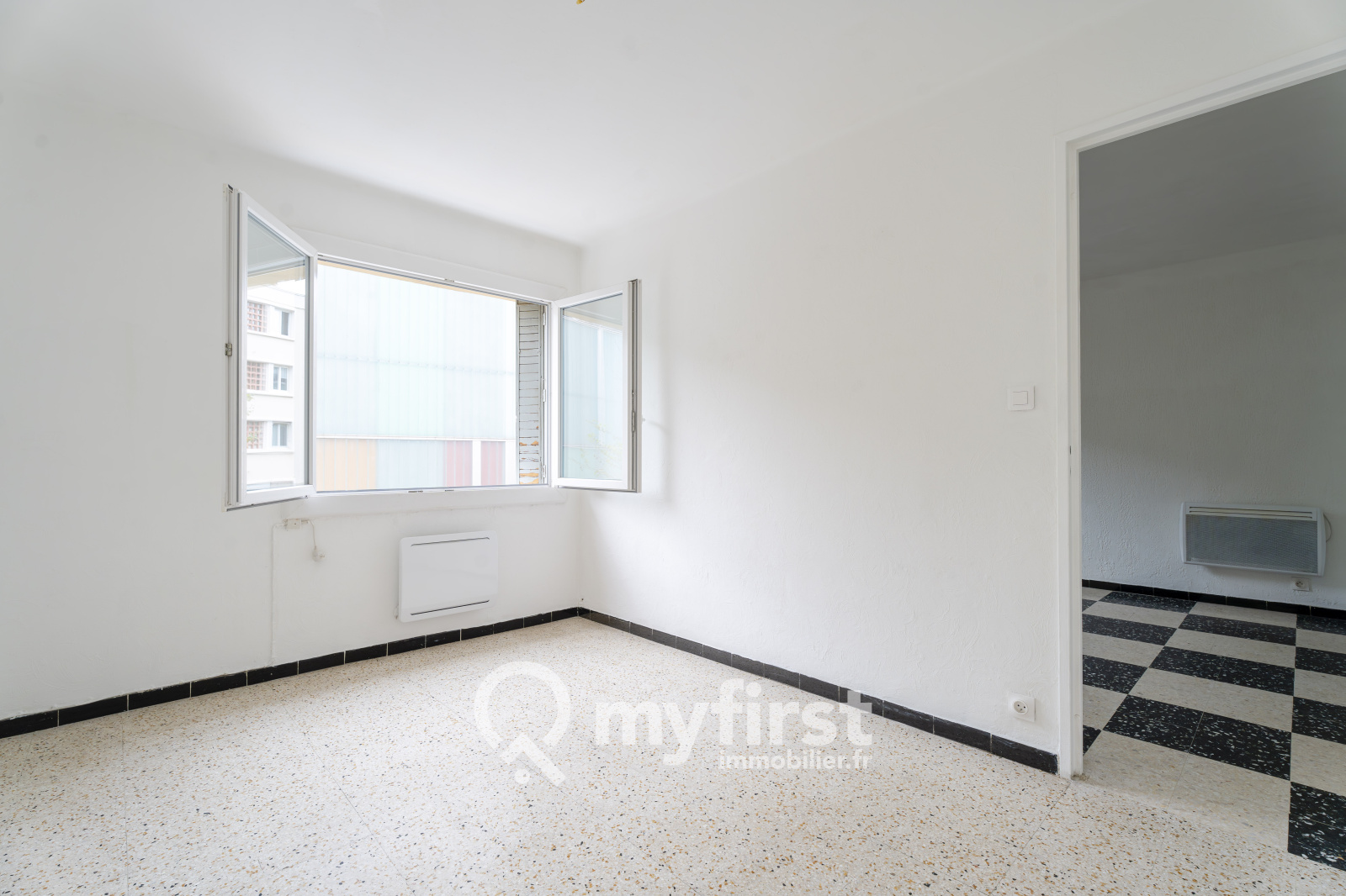 L’appartement vous accueille avec une entrée menant à un séjour lumineux exposé sud avec un espace cuisine pratique.