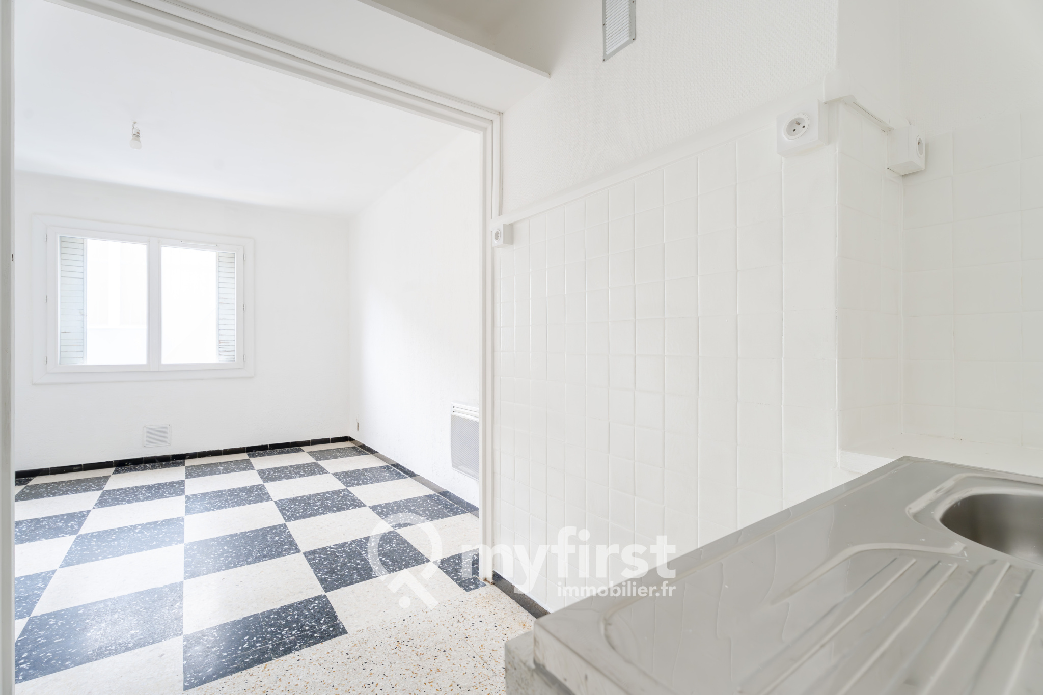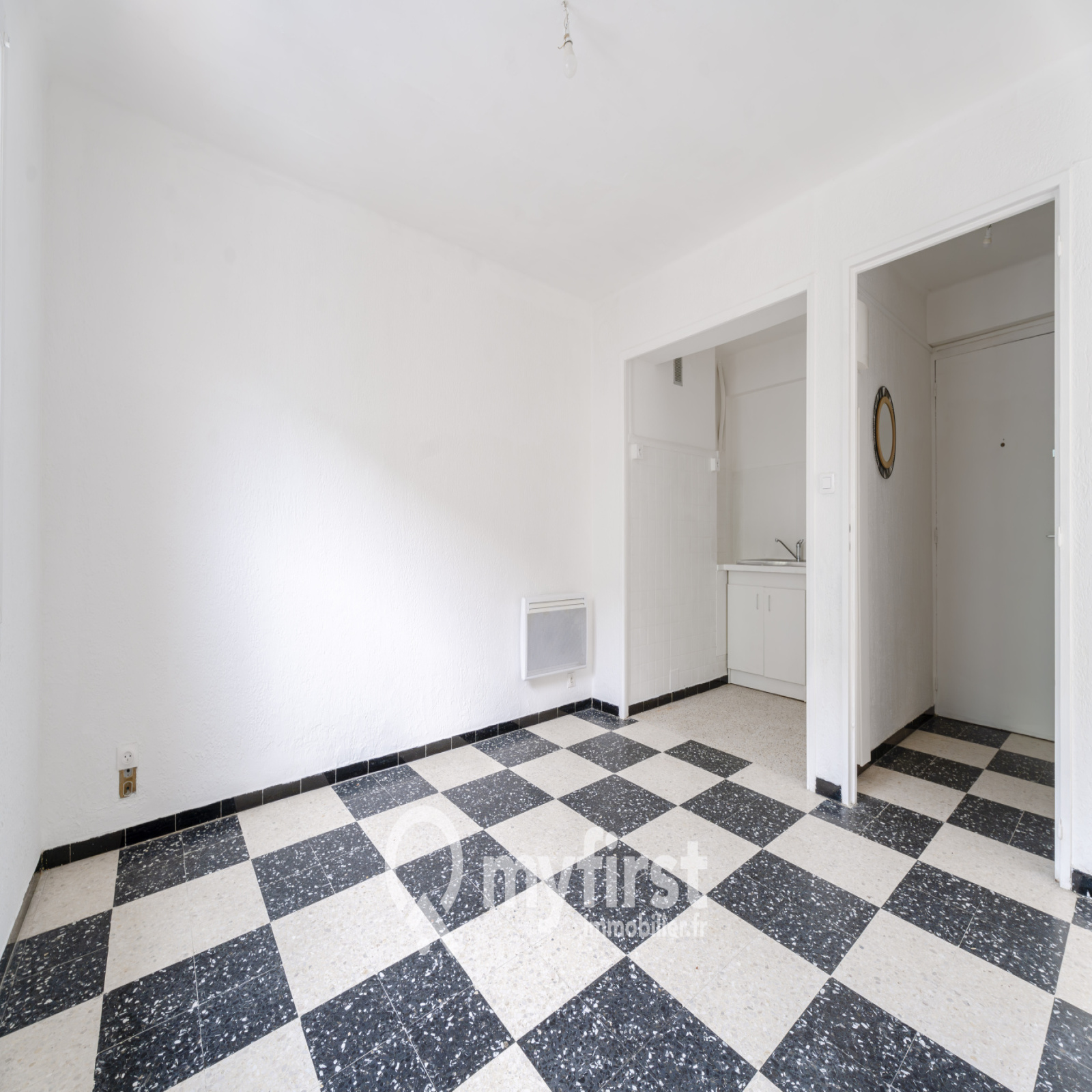 L’appartement vous accueille avec une entrée menant à un séjour lumineux exposé sud avec un espace cuisine pratique.