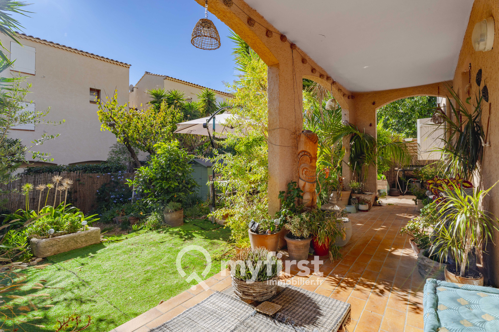 En franchissant la porte, une entrée vous mène vers un salon lumineux, baigné de soleil grâce à une grande baie vitrée donnant directement sur un magnifique jardin de 86 m², orienté plein sud. La terrasse de 12 m² prolonge harmonieusement l’espace de vie, parfaite pour vos repas en plein air ou moments de détente.