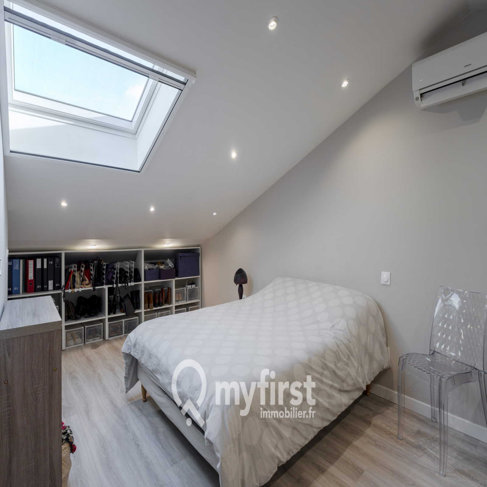 Ce logement, réparti sur deux niveaux, séduit par son atmosphère et son identité. Le premier niveau accueille une belle pièce de vie avec une cuisine entièrement équipée, organisée autour d’un îlot central. Le bois et la pierre s’y répondent avec justesse. Une chambre avec salle d’eau privative complète ce niveau, formant une véritable suite. Depuis le salon, un escalier mène à l’étage, où se dévoile une seconde suite parentale sous combles. Les volumes sont surprenants, la hauteur sous plafond généreuse, l’espace avoisine les 30 m², avec rangements et salle d’eau dédiée. Un cocon à part entière.